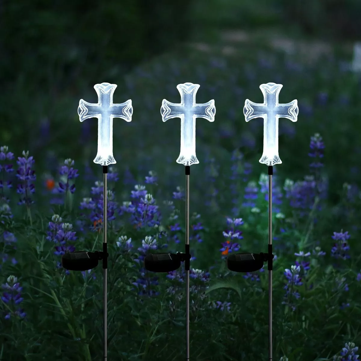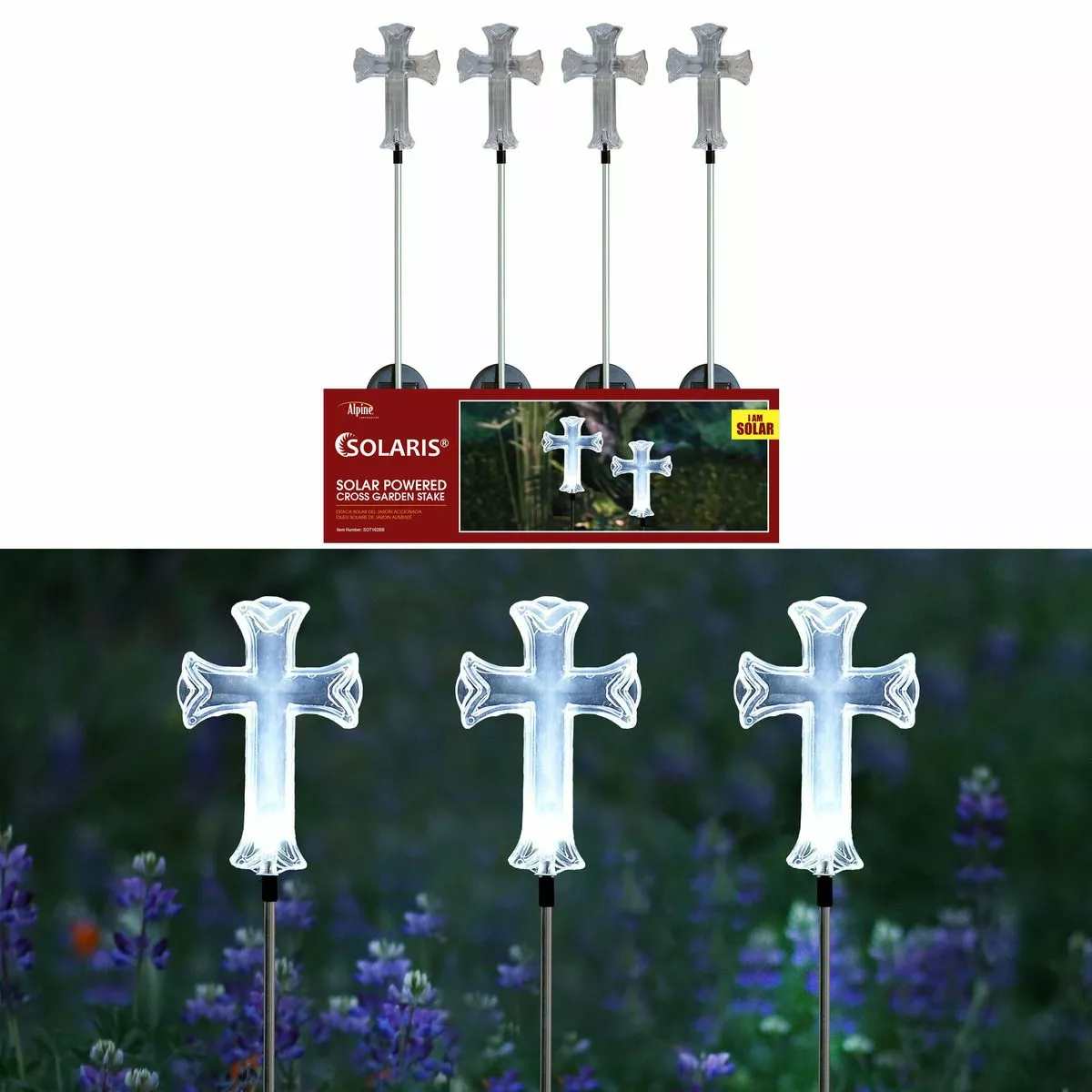 Enhance your outdoor space with the Alpine Corporation Solar Cross Garden Stakes. Each stake features a frosted clear cross that creates a stunning yet peaceful effect when the LED light glows to illuminate your garden and pathways. Constructed of plastic and metal, these lovely accents will provide years of enjoyment. The solar-powered stake will light its surroundings up to 6-8 hours on a full charge and includes a convenient on/off switch. Easily set up this garden decor using the durable stakes that firmly plant into the ground. At 34 inches tall, each stake measures 4″L x 1″W x 34″H and include a one-year manufacturer’s warranty from date of purchase.