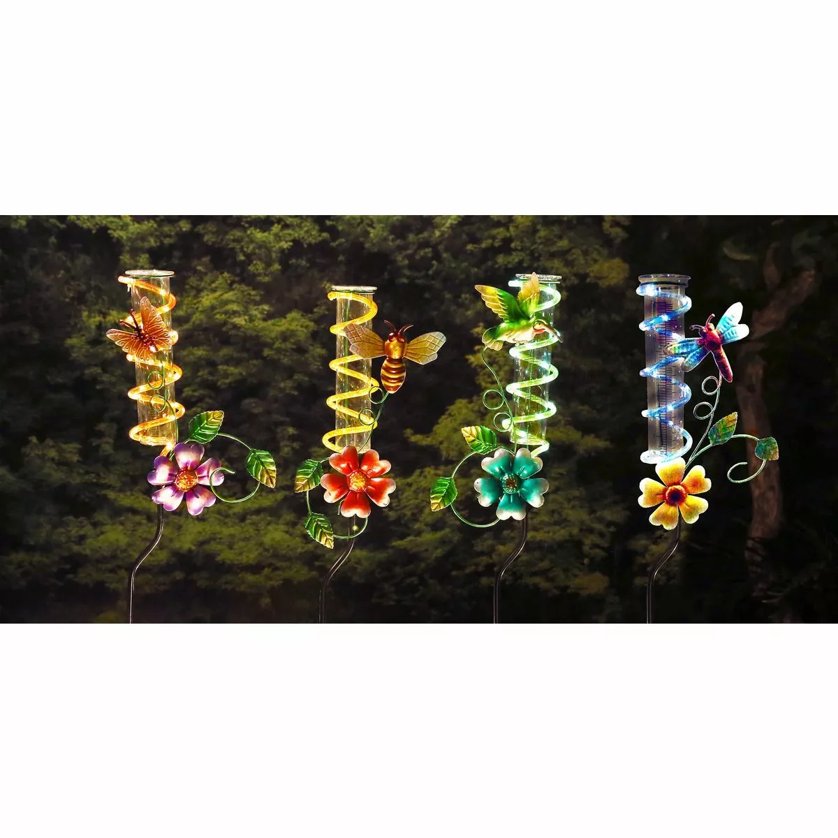 - GREAT DECORATIVE GARDEN STAKE: Masterfully crafted Solar Floral Insect Rain Gauge Stake and a battery life that goes up to 8 hours make a great addition to any type of outdoor decor