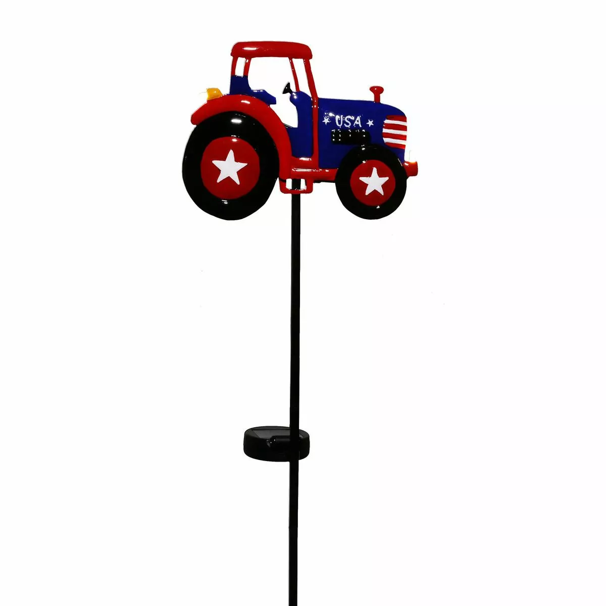 - PATRIOTIC DECOR: Metal tractor in vivid red, white and blue illuminates in the evening to create farm-inspired accent day and night