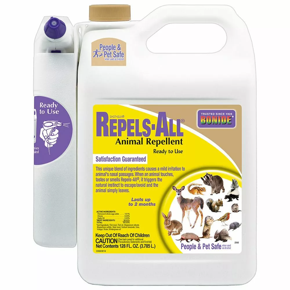 - STRONG REPELLER – This unique blend of ingredients causes mild irritation to animal’s nasal passages. When an animal touches, tastes, or smells Repels-All Animal Repellent, it triggers the natural instinct to escape/avoid and the pest leaves.