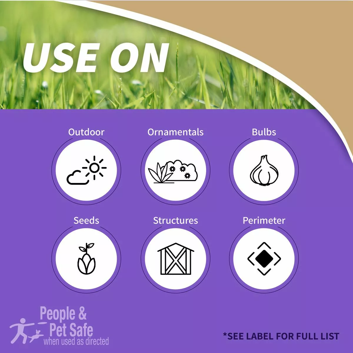 Repels nuisance animals including skunks, raccoons, squirrels, chipmunks, and many more from ornamental gardens and planting areas. Repels through smell, taste, and irritation of eyes and nose. The formula will not harm animals. Safe to use in pet and children’s play areas when used as directed. Product lasts up to 60 days.