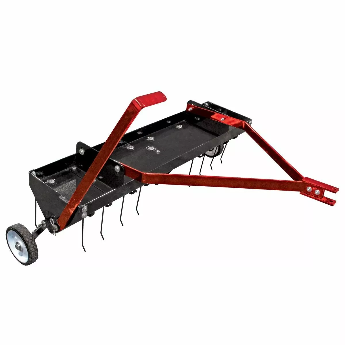The FIMCO Dethatcher Attachment loosens and lifts dead grass, leaves and other lawn debris to promote healthier lawn growth. Superior 42 inch width steel construction uses 22 triple coiled tines to cover and clean more ground and hold up to 150 pounds. The transport lever engages or disengages the coiled tines to easily cross driveways or sidewalks. With a 10 minute assembly time, quickly be on your way to achieving and maintaining a healthy and vibrant lawn.