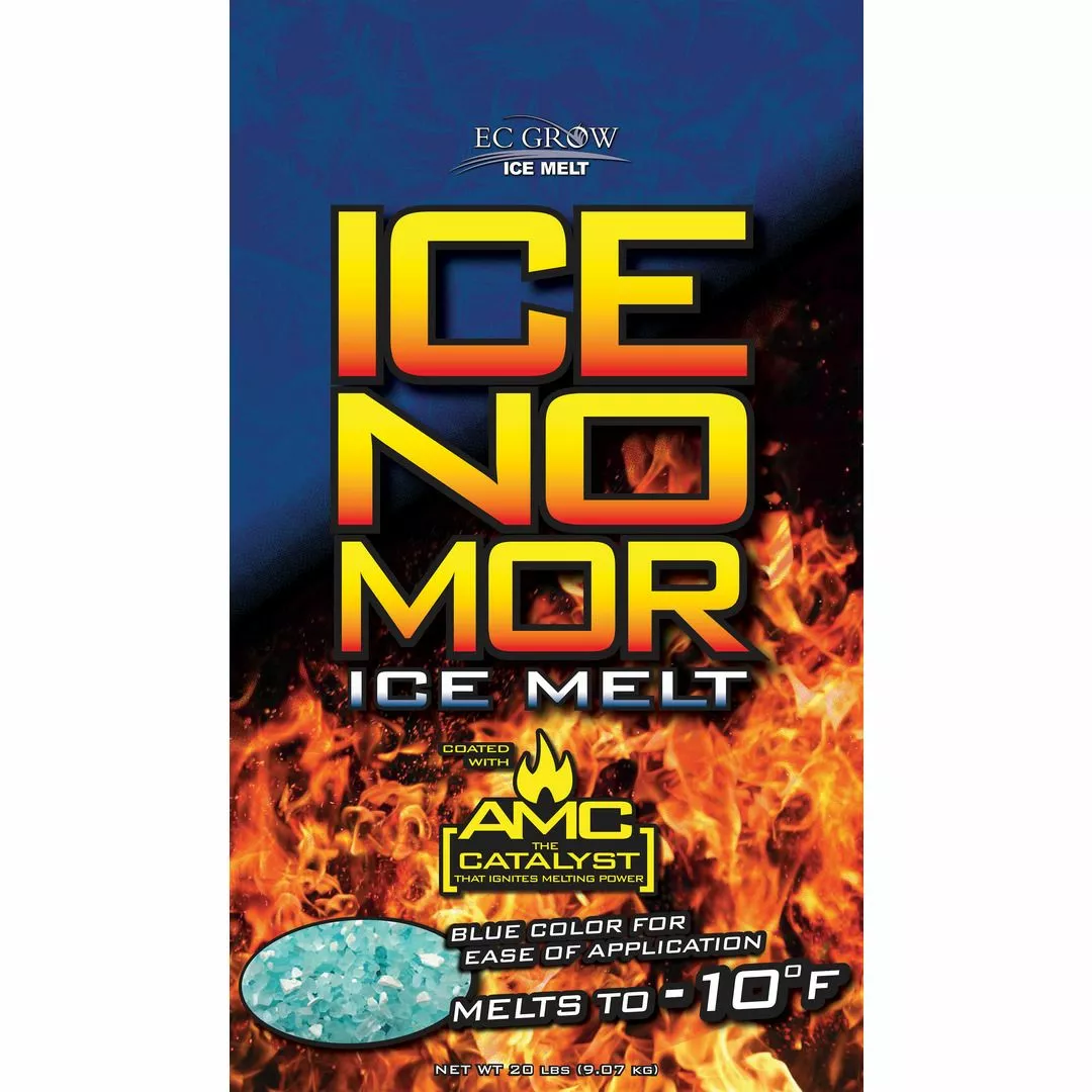 Ice No Mor brand granular ice melt is a medium sized granular particle de-icing blend of sodium chloride, calcium chloride, and magnesium chloride plus AMC. Ice No Mor is an ice melter specifically formulated for high performance melting. It will eliminate the worst ice and snow quickly and to temperatures as low as -10°F. Ice No Mor contains AMC, calcium chloride, and magnesium chloride, which work quickly to form an ice melting brine. This brine is essential for fast melting action at low temperatures. After Ice No Mor capitalizes on the fast acting materials within the blend, it then turns to sustained melting for hours after application. Ice No Mor works for extended periods of time, reducing the need to reapply product. Ice No Mor is also dyed blue, making it easy to see where the product has been placed. Ice No Mor delivers deicing speed, performance, safety, and reliability.