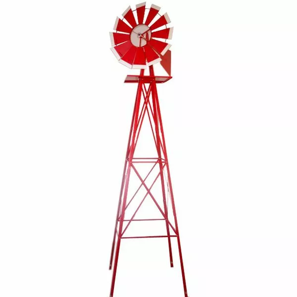 8 Ft Decorative windmill. Red powder-coated with white tips on wheel